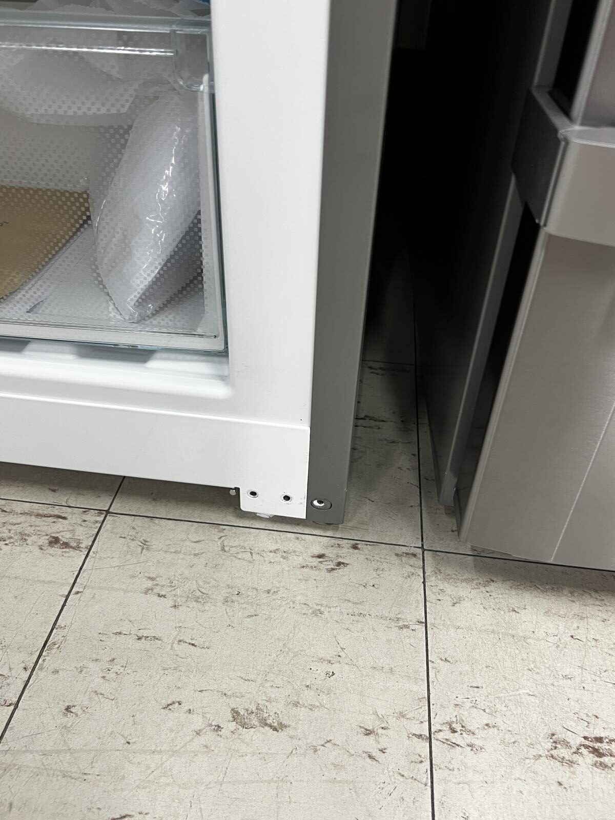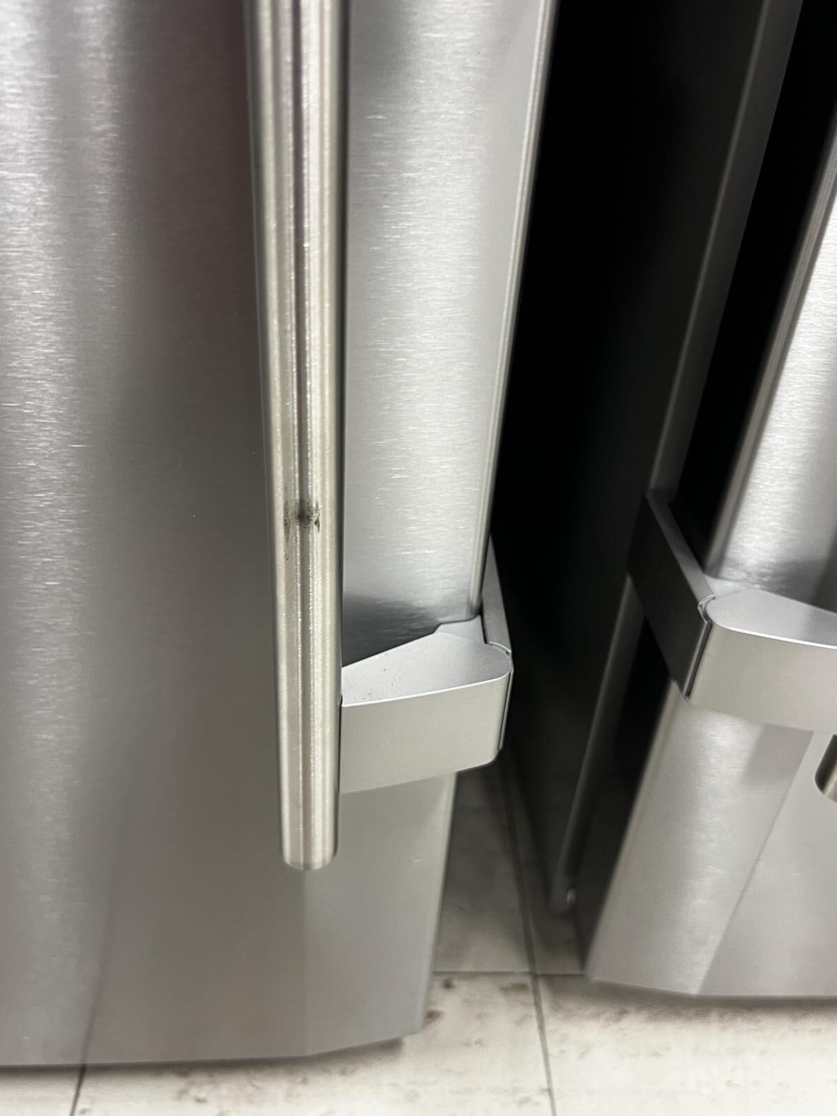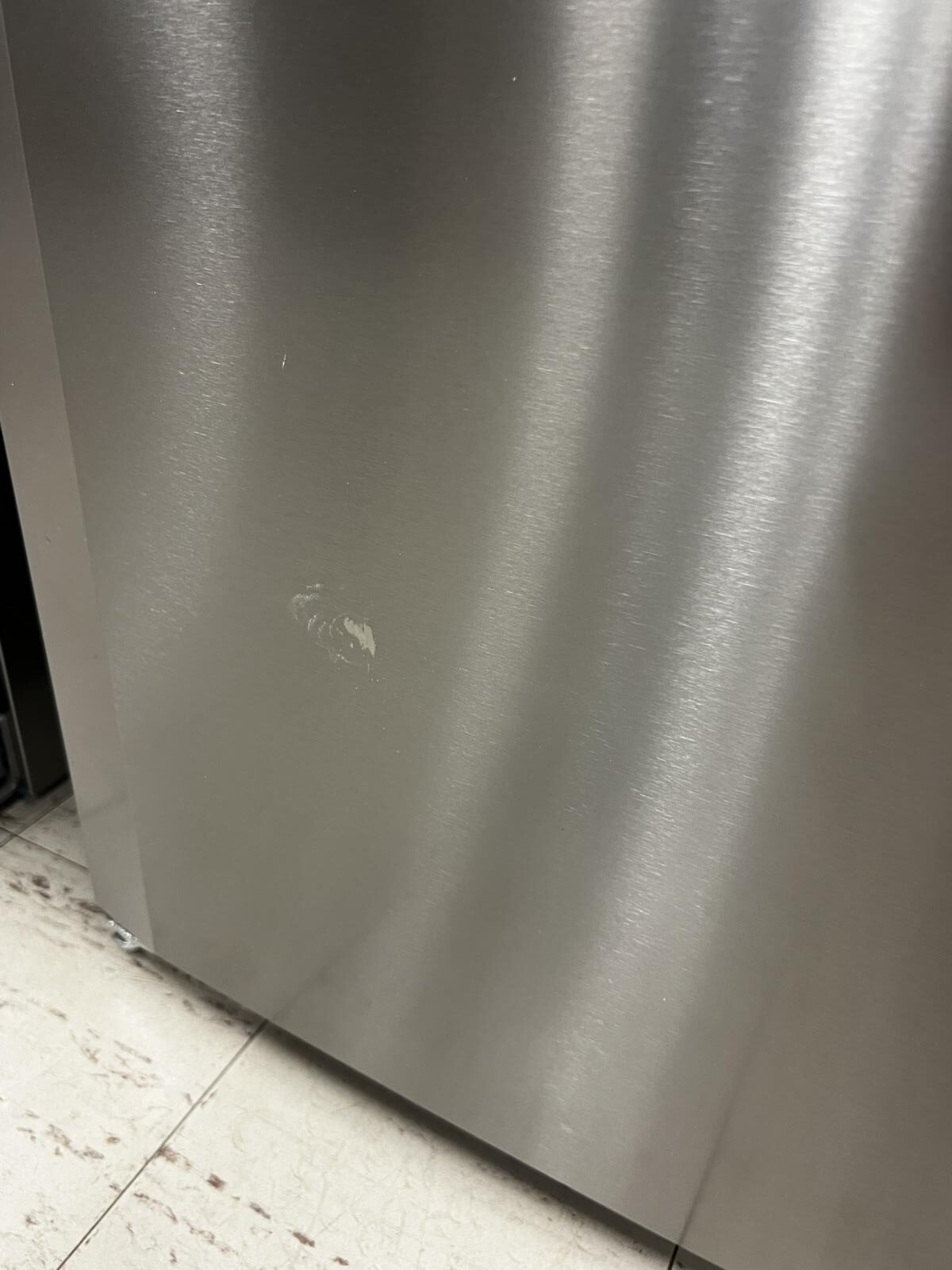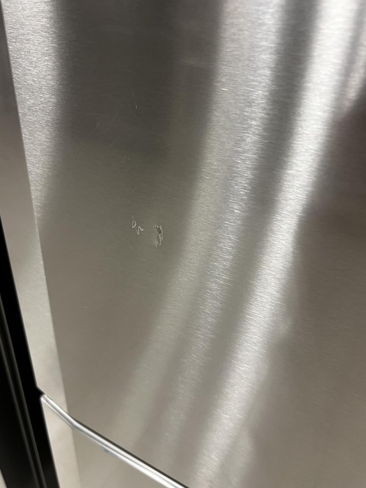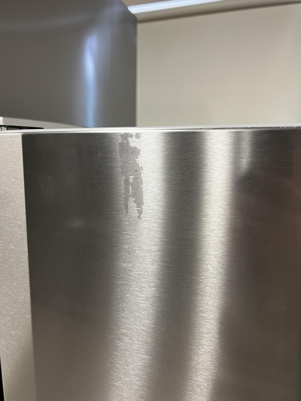 Has several imperfection in the doors. Missing small decorative clip at bottom right to cover up hinge reversal holes.